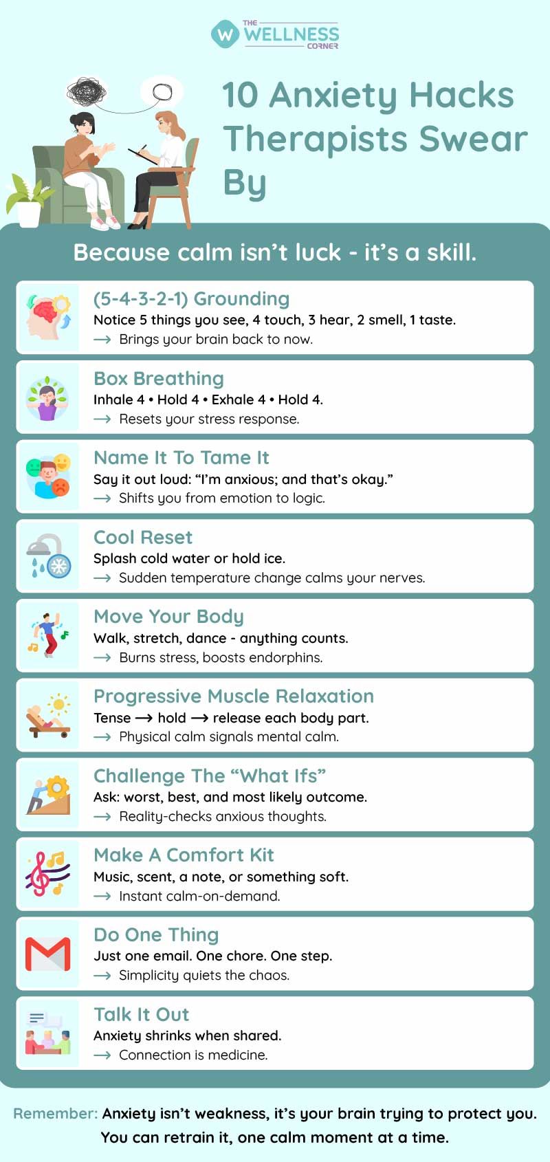 Let’s walk through 10 anxiety hacks therapists truly trust, and how you can make them part of your daily life.