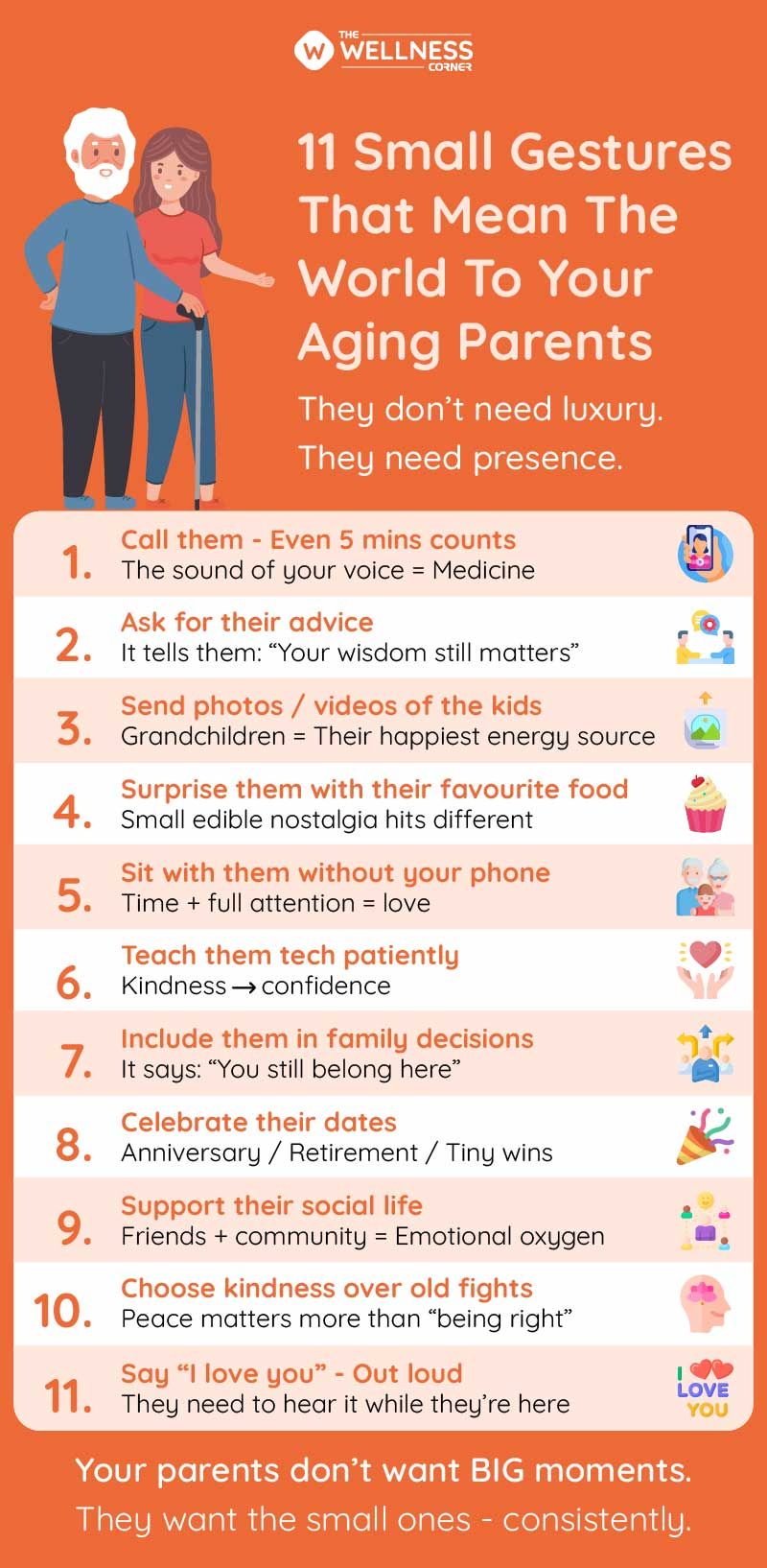 Your parents gave you their best years without expecting anything in return. Now, they may not say it, but they crave your presence, your warmth, and your reassurance that they still matter.
