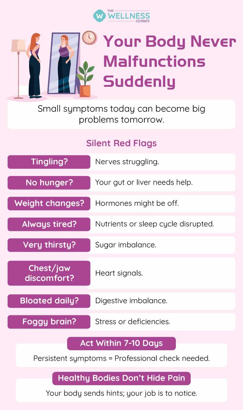 Instead, it uses signals that are tiny, subtle, and sometimes weird. The problem is… most people are so busy, so stressed, and so used to “pushing through” that they ignore these signs until they become a health problem.