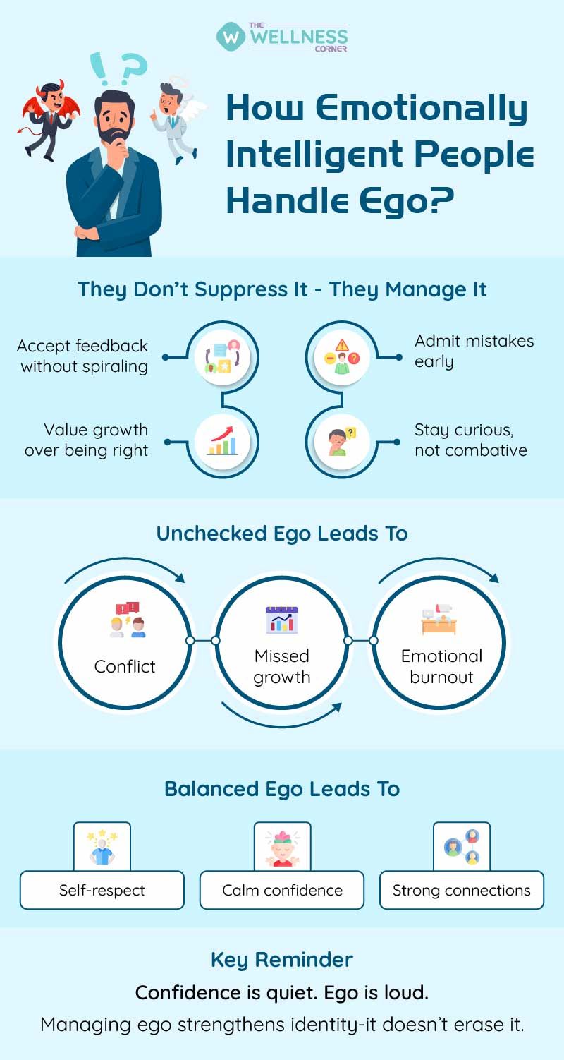 Handling your ego doesn’t mean silencing your voice, shrinking your confidence, or becoming overly self-critical. It means choosing growth over pride. Openness over defensiveness. Connection over control.