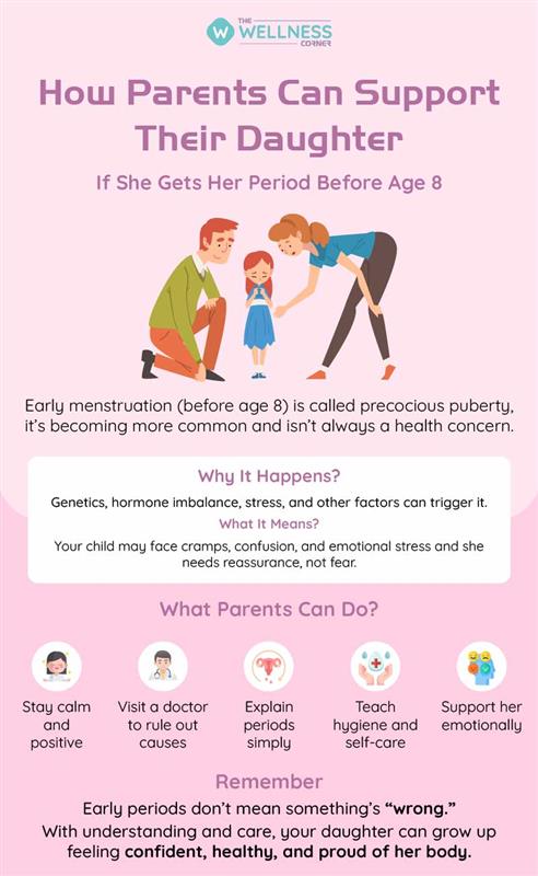Early menstruation doesn’t just mean the start of monthly cycles. It brings with it a mix of physical, emotional, and social challenges—especially because at age 8, children are still very young to fully grasp what’s happening.