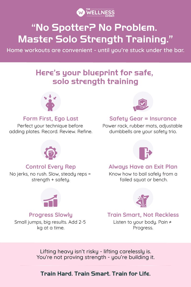 At the gym, a spotter (usually a training partner or coach) is there to help you lift heavier, prevent accidents, and provide encouragement. But when you’re training alone, that safety net disappears. This doesn’t mean you can’t push yourself; it just means you need to be smarter about how you train. With the right approach, you can still lift heavy, build strength, and make progress without putting yourself in danger.
