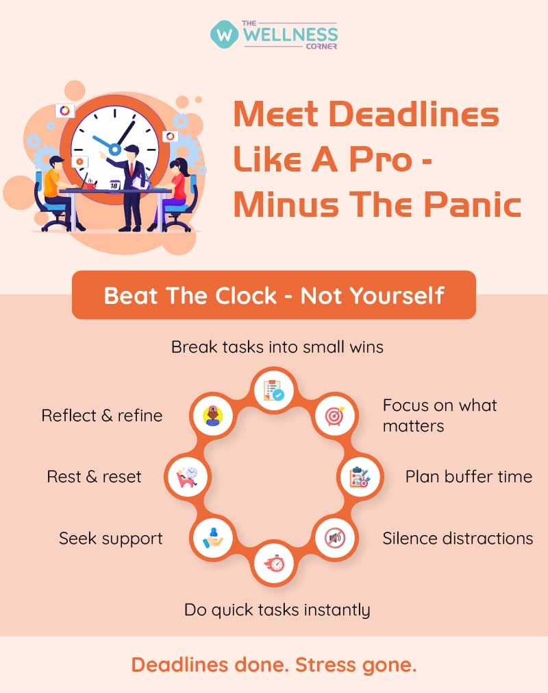 Deadlines will always exist in life, but worry does not have to. With smart planning, time management, and regular self-care, you can meet your goals efficiently while protecting your mental well-being.