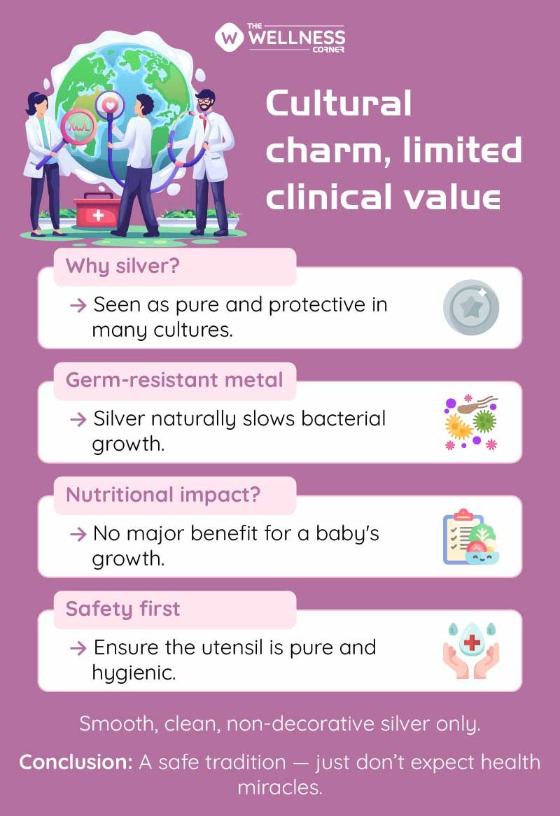 But what’s the real truth? Does silver truly make a difference to your baby’s nutrition, or is it more of a cultural belief? Let’s break this down with both tradition and science in mind.