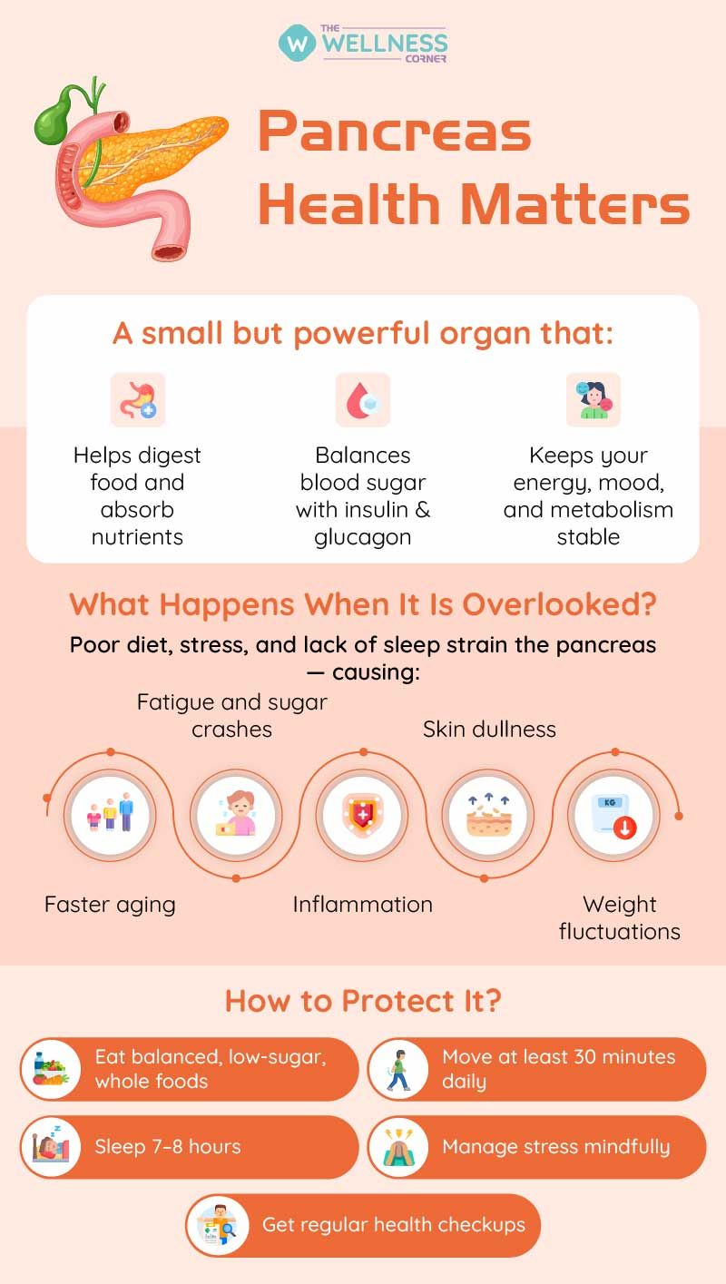 When your pancreas works well, your body hums in balance. But when it’s compromised due to high sugar diets, constant stress, reused food, and poor sleep, it begins to tire. This silent strain doesn’t just affect digestion or energy situations; it can impact how your entire body functions.